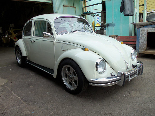 Base 1300cc、12V Option スライディングルーフ、BRMスタイルホイール、ナロービーム、クイックシフター、ウッドステアリング Info スライディングルーフ付きの67年です。バンパーレス、フロントナロー&BRMと定番のスタイルです。67’には良く似合いますね。1300ccにグラスパックマフラーの組合わせでストレス無く走ってくれます。これからVWが快適に乗れる季節です、スライディングルーフを開けてドライブを楽しんで下さい。 |