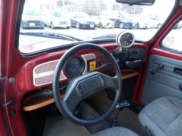 Base 1600cc、12V Option キャブレター仕様、ディスクブレーキ、BSRステンレスマフラー、8スポークAW、GENE-BERGシフター、フロントドロップ、タコメーター、ボルト&テンプメーター、パーセルシェル Info 年式の旧いメキシコビートルのワンオーナー車です。この辺りの年式はその後に生産された物よりドイツ製に近いような感じがします。走行はメーター読みで12万キロと走っています(年式の割には少ないですが)。全体にペイントは艶が引けて年代を感じさせますし、内装も使用感があります。エンジンは10万キロ時にNEWエンジンに換装してから約2万キロ走行なので当分安心して乗って頂けます。本当に日常の足として空冷VWを楽しんで頂ける車です。 |